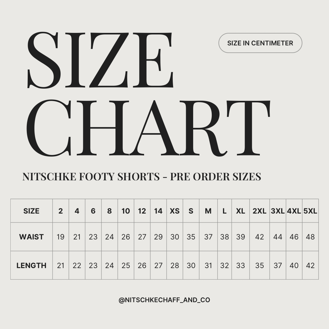 These footy shorts are perfect for everyday wear. From the coast to the yard, these shorts are perfectly suited for anyone and everyone, no matter what your plans are. Worn and tested by us, these footy shorts are durable, comfortable and have pockets!! Please see size guide before ordering, you will need to size up in this style.